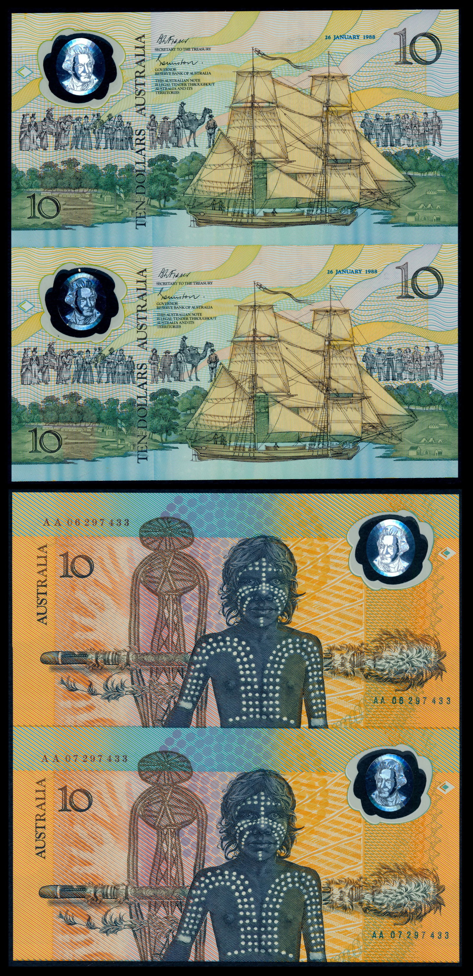 Australia $10 1988 uncut pair