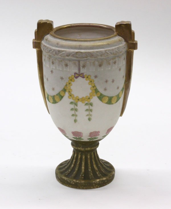 SoldArt Nouveau Austrian Amphora Vase c. 1910An antique Austrian Art Nouveau Amphora Vase c. 1910. Hand painted with floral motif and gilding. measures roughly 8 1/2 inches tall.See Sold Price