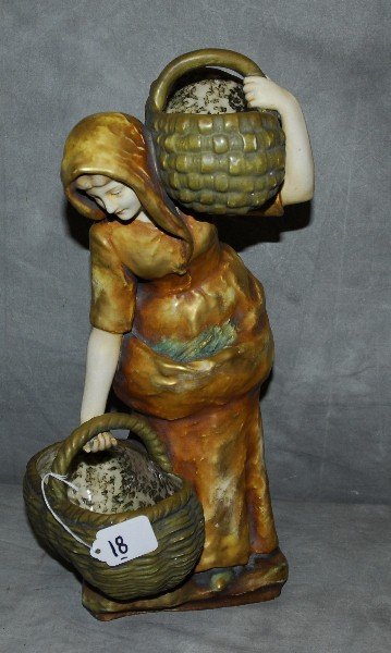 Austrian amphora pottery figure with baskets. H:17".