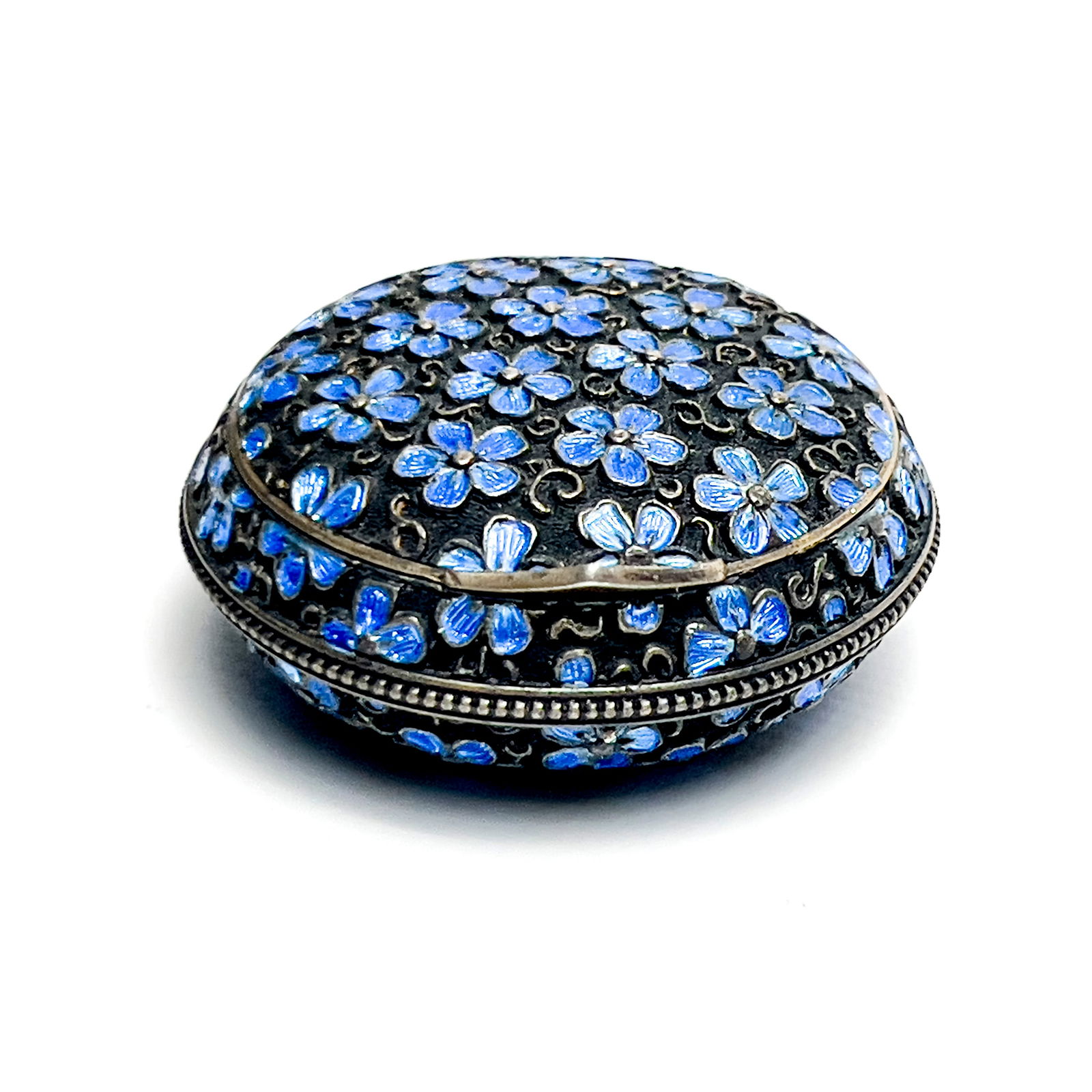 Austrian Blue Enamel Floral Silver Snuff Box