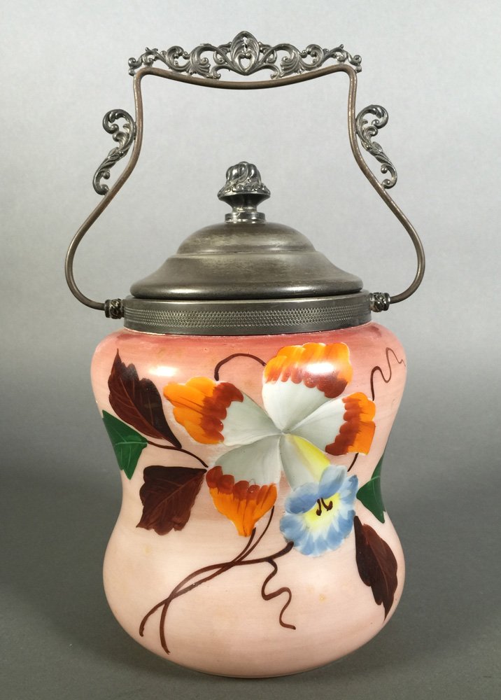 Antique Mt. Washington Glass Floral Biscuit Jar