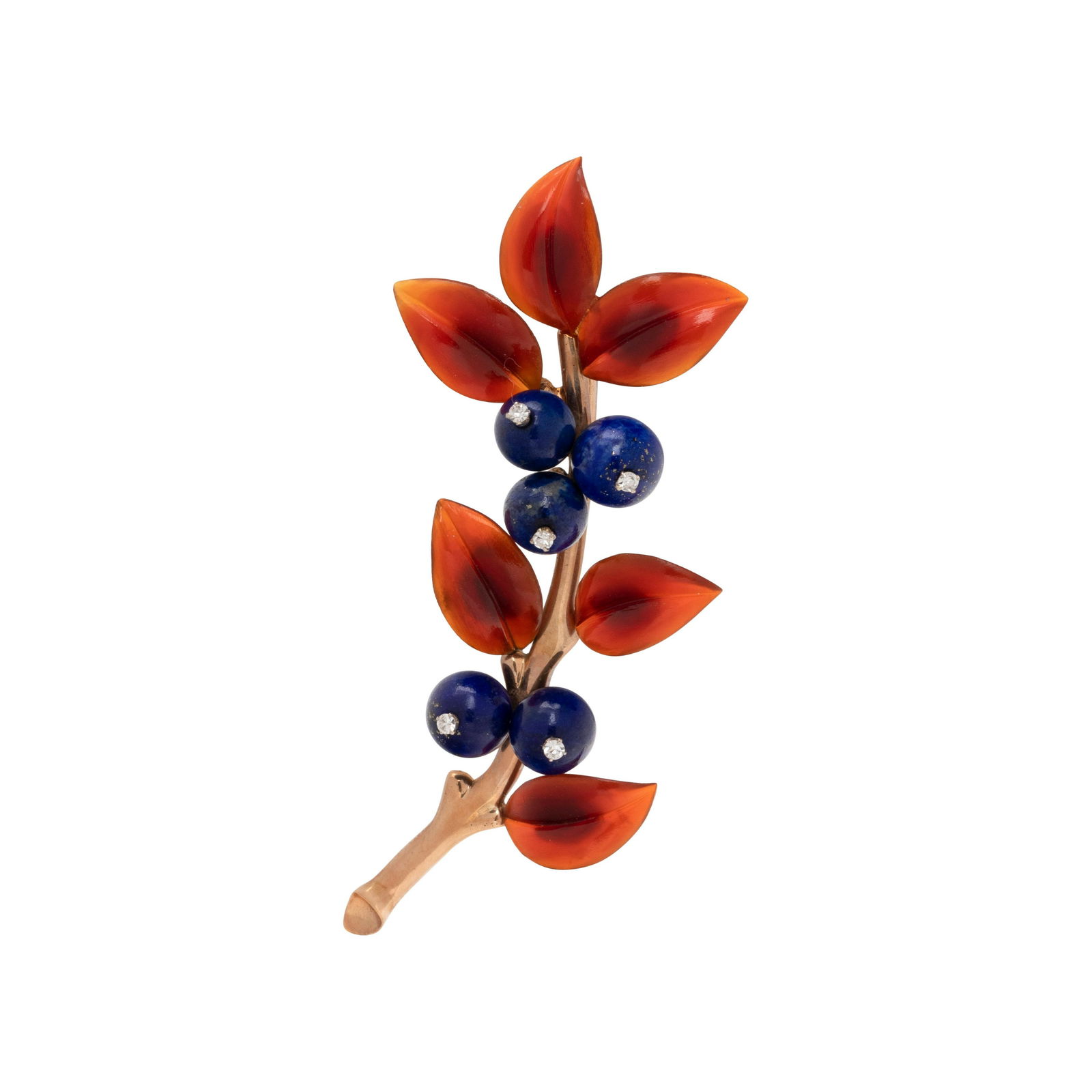 Broche figurant une branche or 585 ornée de baies en lapis-lazuli et de feuilles en cornaline, Piguet Hôtel des Ventes4.2(5)CHF 500
