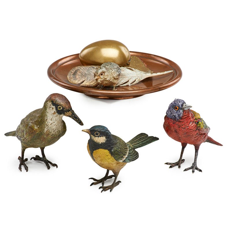 A composed lot of seven various marked porcelain birdsFeb 24, 2026A composed lot of two Austrian cold painted bronze figurine groupsFeb 24, 2026Limoges Bird Plates and Platters, Group of 14Feb 26, 2026K.E. Carl - 4 Carved BirdsFeb 26, 2026Two Pairs of Silverplate Table Birds, Pheasants & Partridges5 days LeftAntique Majolica Ceramic Bird & Wheat JardiniereMar 18, 2026Cast Brass Pheasant Figures, PairMar 26, 2026A pair of Japanese lacquered duck form incense boxesFeb 25, 2026Pair Continental Cold Painted Bronze Miniature Rooster and Birds FigurinesFeb 28, 2026Group Eleven Porcelain Bird Figures15 hrs LeftGroup of Six Decorative Bird-Shaped Candle Figurines Assorted SizesFeb 26, 20263 Continental Cold Painted Bronze Miniature Bird Figurines Early 20th CenturyFeb 28, 2026Andrew Tom Beary (USA/Louisiana, contemporary)Feb 27, 2026Chris Andrews (USA/Magnolia, TX, contemporary)Feb 27, 2026(4) M J Gland (Clayton, DE) Duck DecoysFeb 28, 2026Chinese Duck Form Covered Boxes, 4Feb 26, 2026
