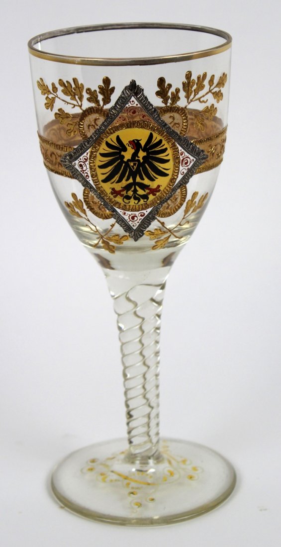 Austrian painted crystal chalice with eagle