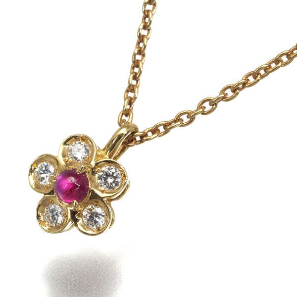 Gold Tiffany&Co. Necklace Ruby Flower 18K 750 Yellow