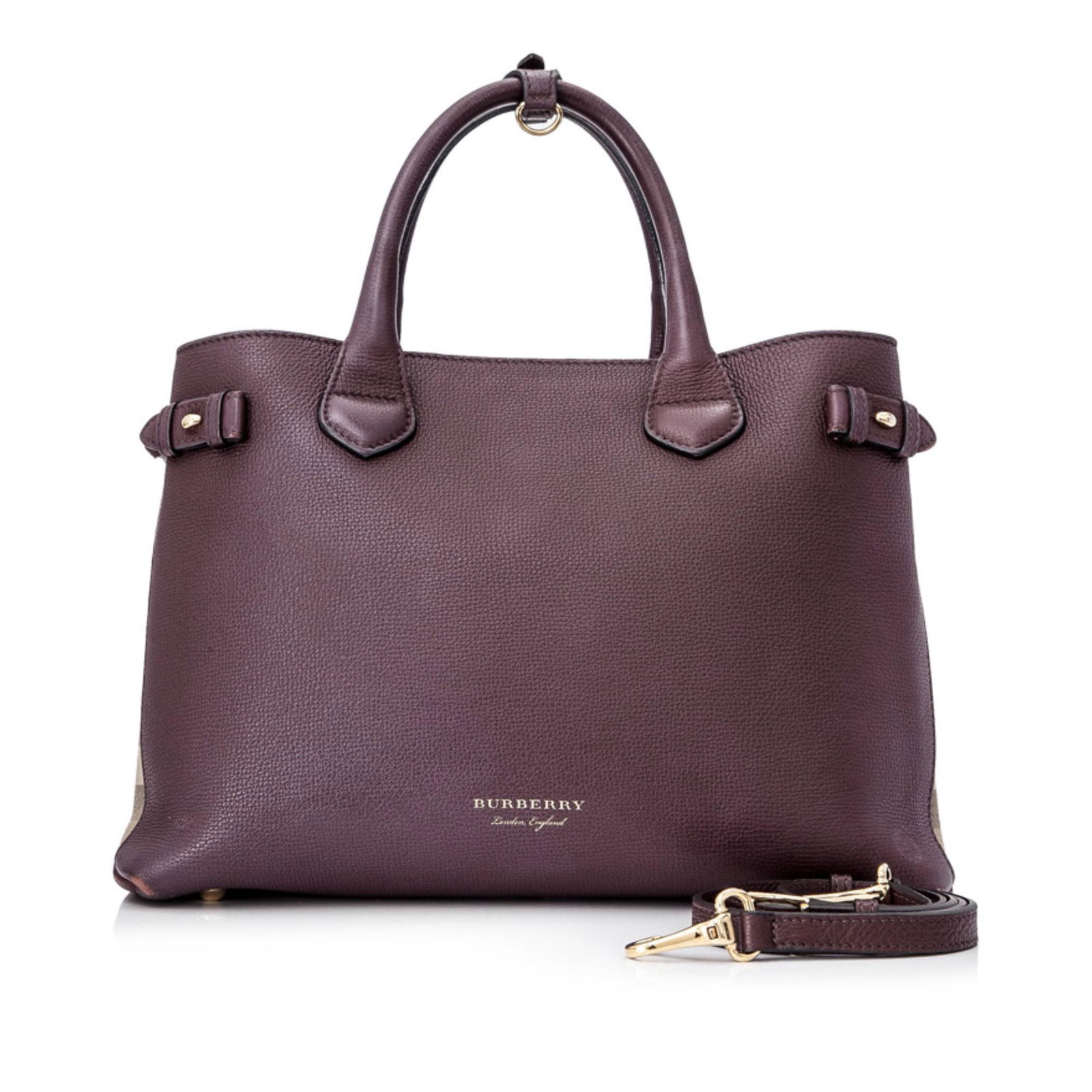 Burberry Medium Leather and House Check Canvas Tote Welburn