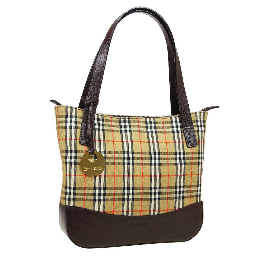 Burberry Nova Check Tote Bag Beige Canvas Authentic