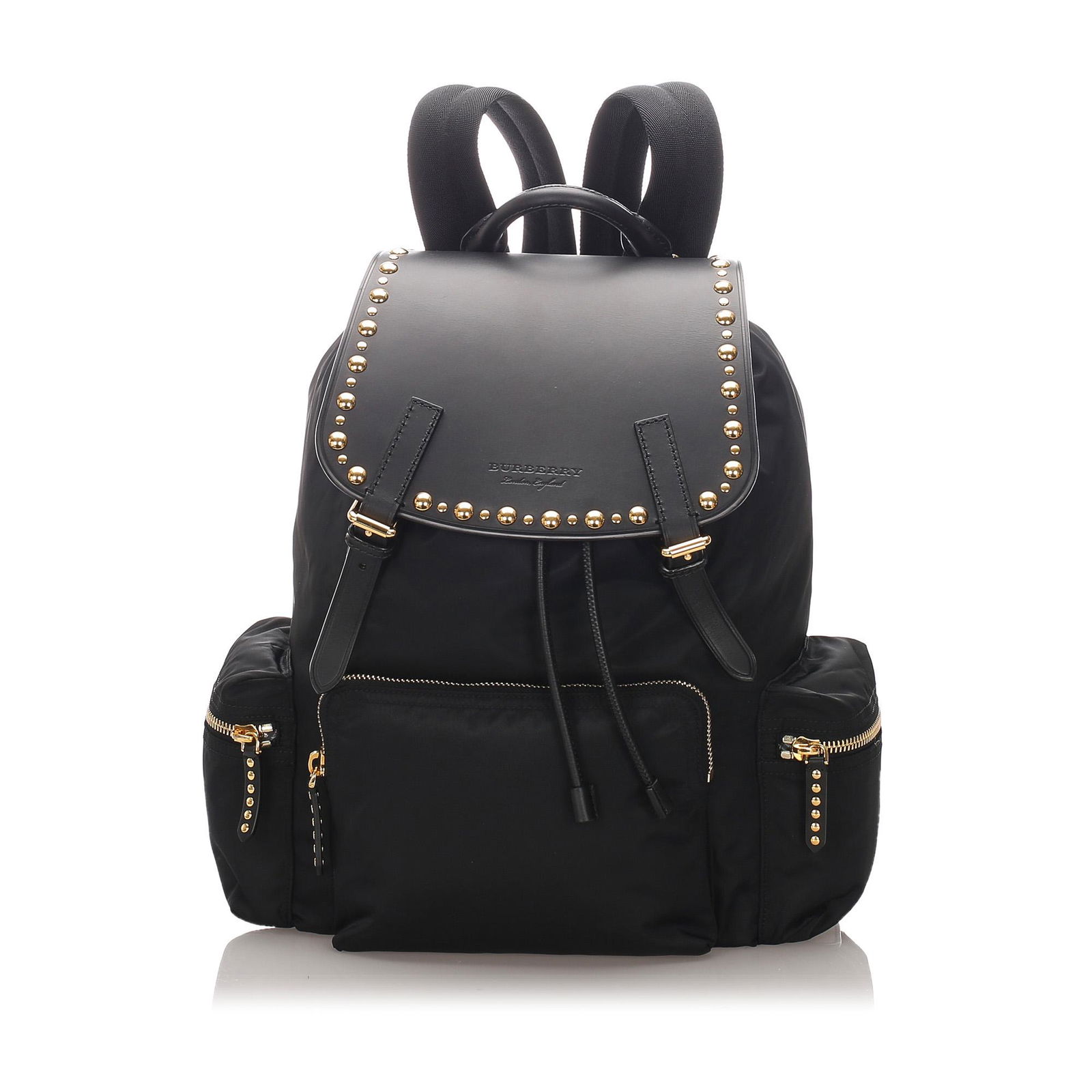 Black Nylon Rucksack Backpack by Burberry with Gold Hardware