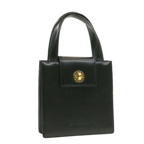 Authentic BVLGARI Hand Bag Leather Black