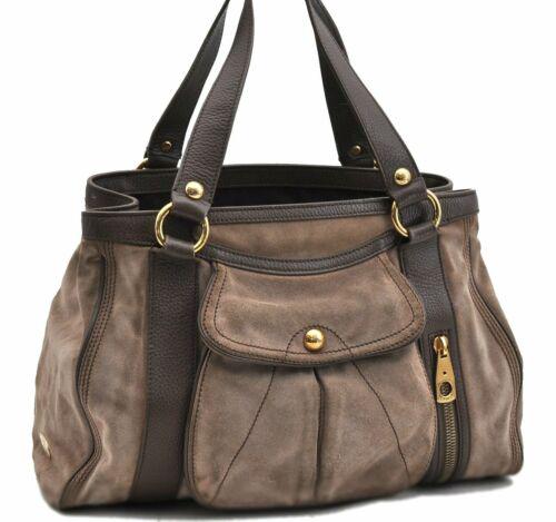 Authentic CELINE Hand Bag Suede Leather Brown