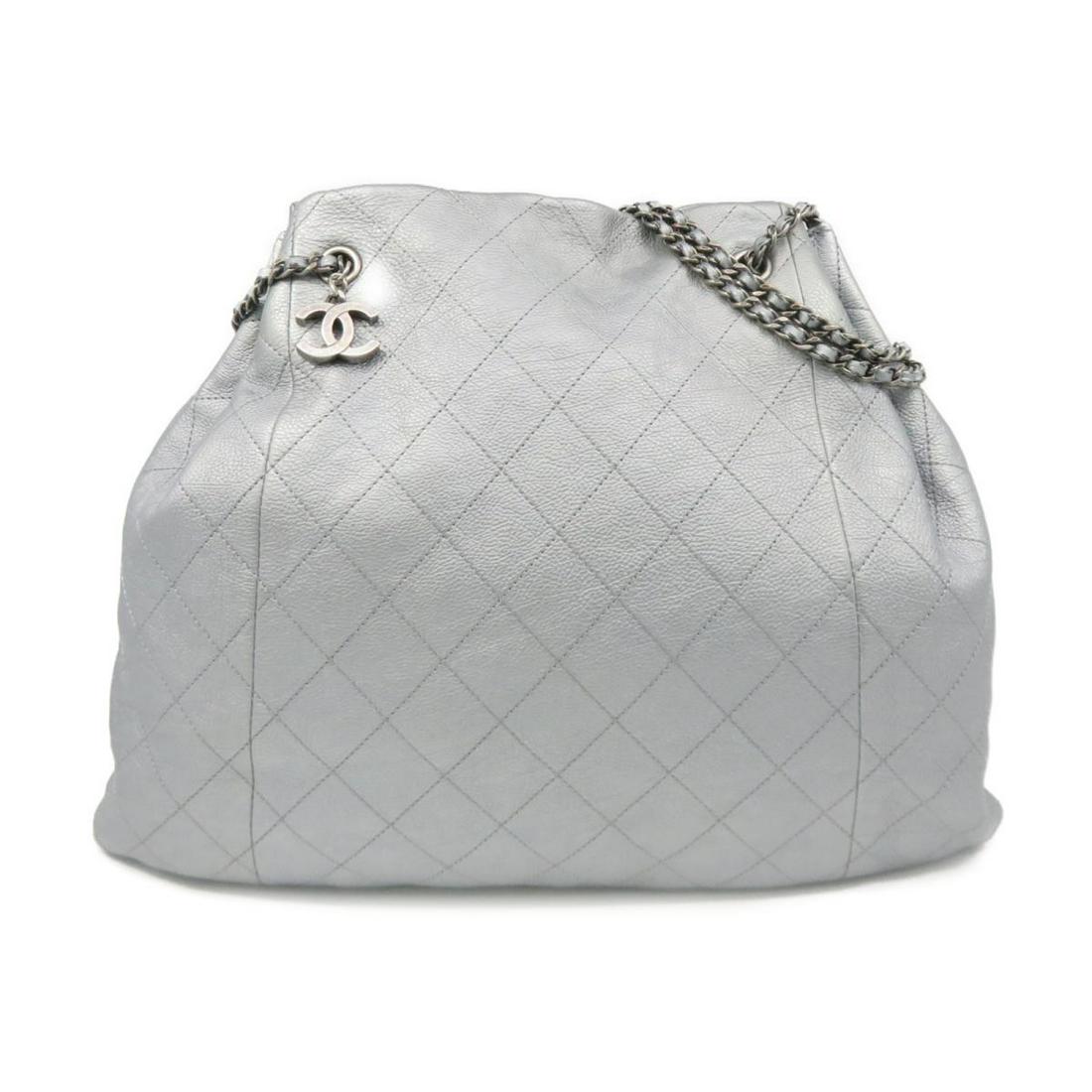 Authentic CHANEL Shoulder Bag Gray Calf