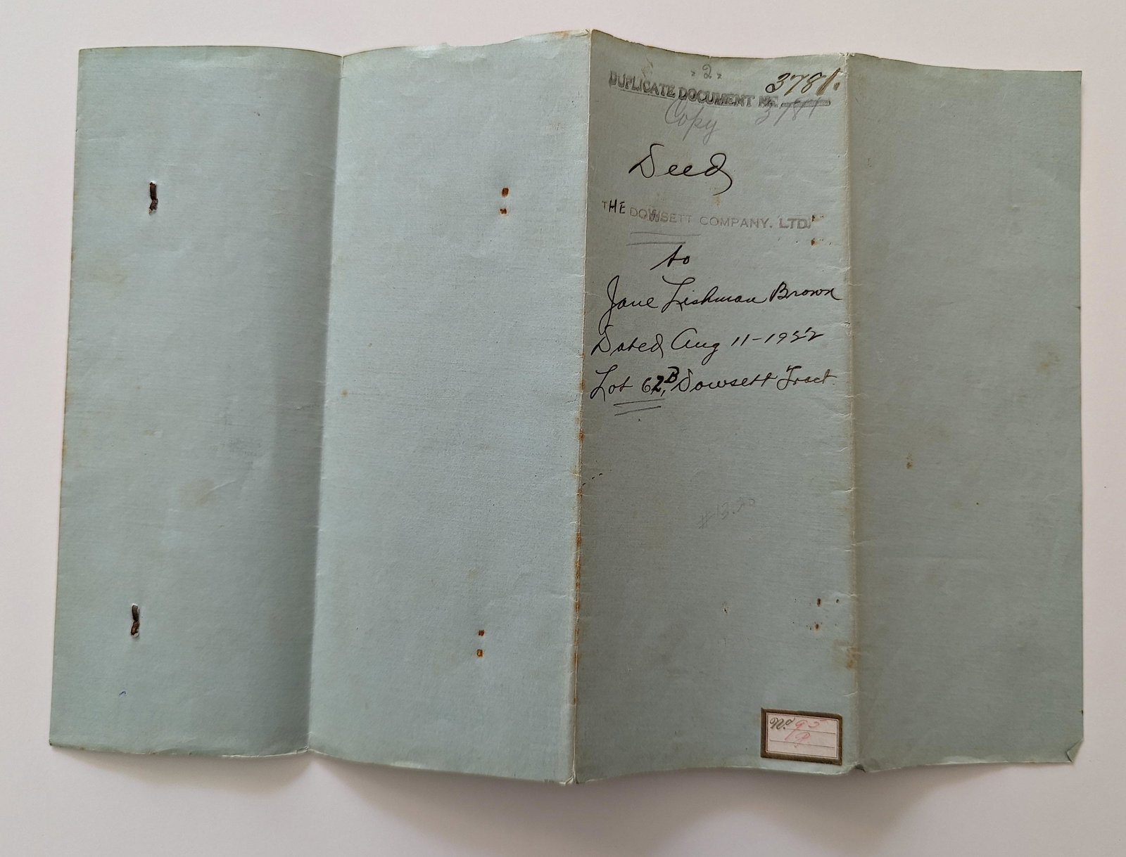 Authentic Duplicate Land Document Hawaii Honolulu, 1922