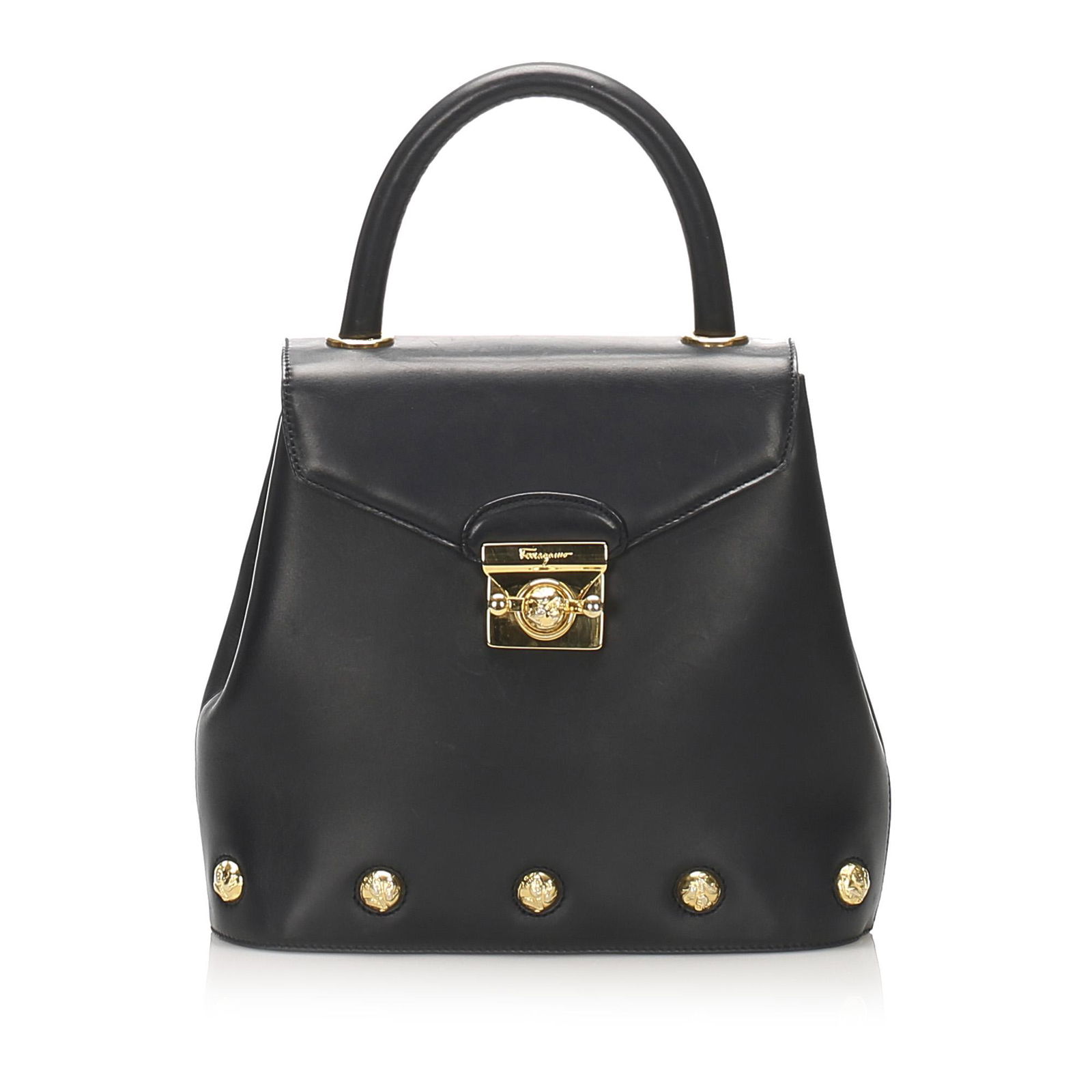 Salvatore Ferragamo Gancini Hand Bag Black Leather Gold Accents Auth E218791Bidhaus4.2(838)$220949 Lots Away