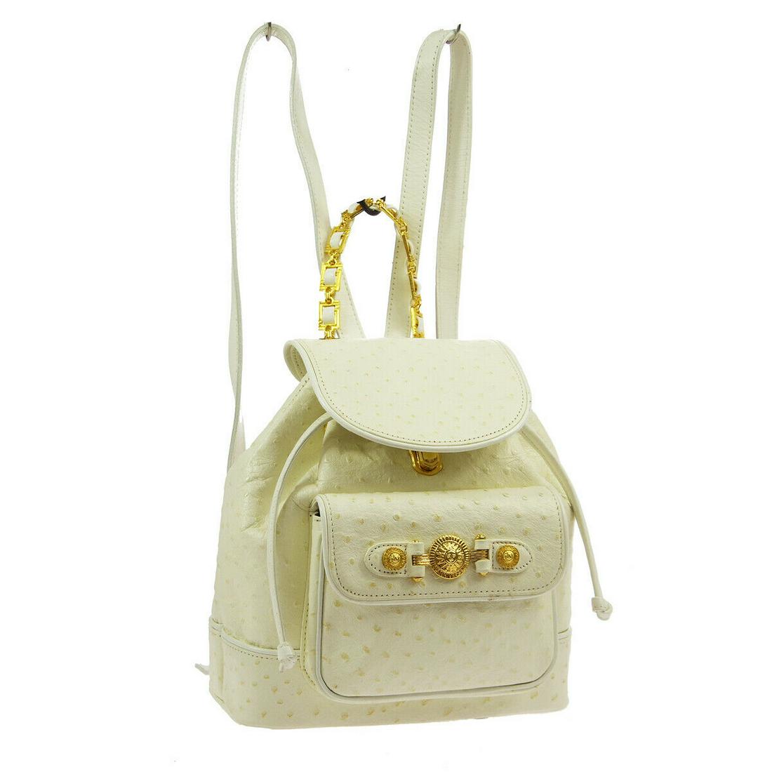 White Gancini Flap Backpack by Salvatore Ferragamo with Drawstring ClosureBidhaus4.2(838)$100Feb 20, 2026