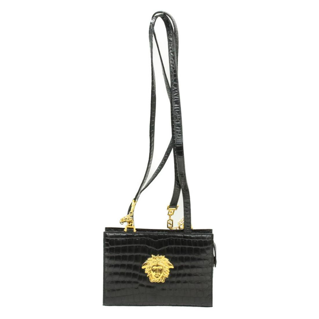 Gianni Versace Black Gold Leather Shoulder Bag Auth I 003