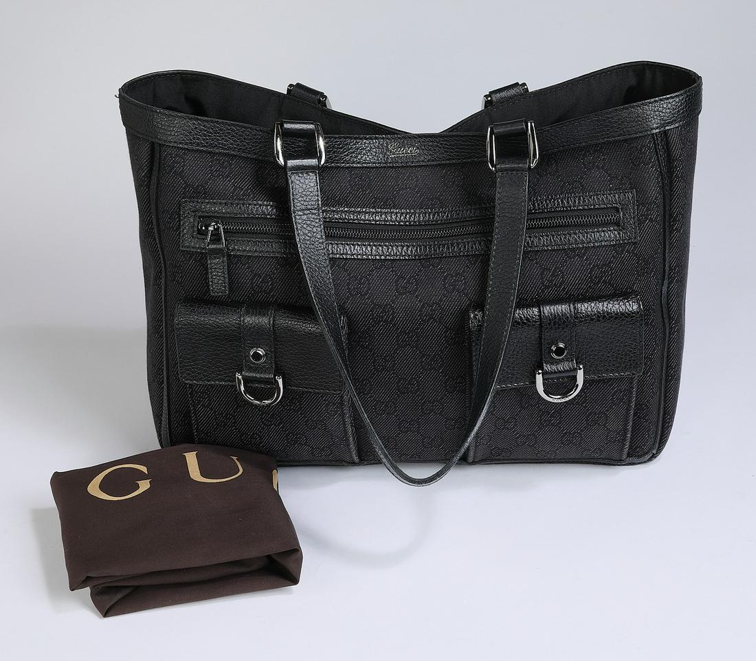SoldGUCCI BLACK CANVAS MEDIUM ABBEY TOTEBAGShoulder BagGucci Medium Abbey Tote-Black Monogrammed Canvas-Black Leather-Champagne Gold Hardware-31cm x 22cm x 12cm-AAP7848See Sold Price