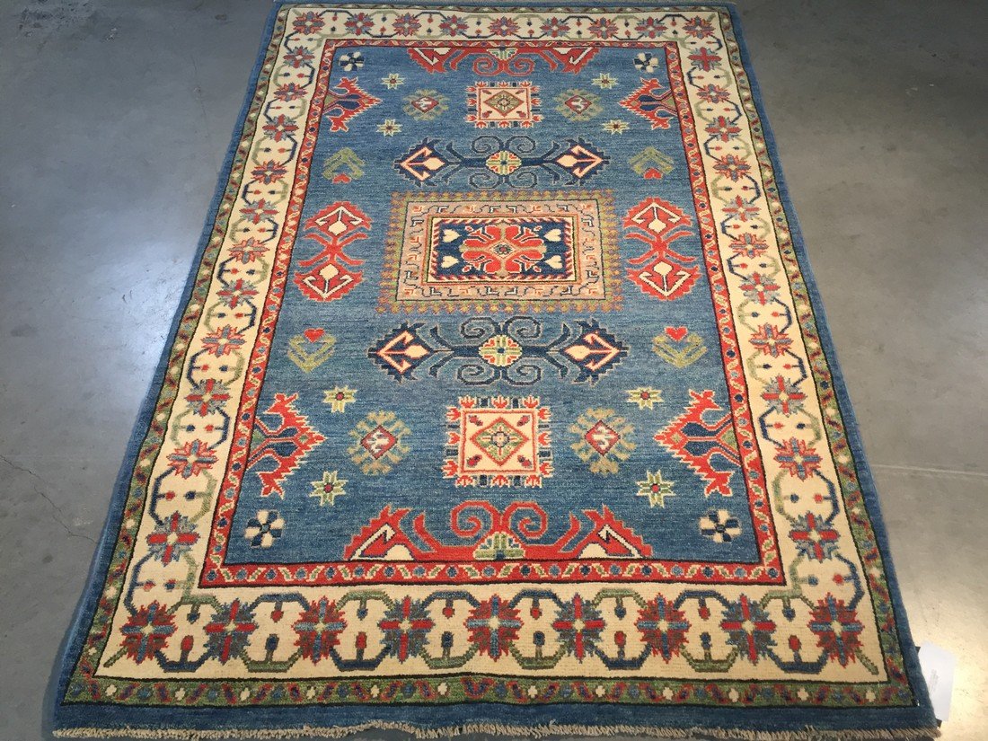 Authentic Hand Knotted Wool "Kazak" Rug, 4x6