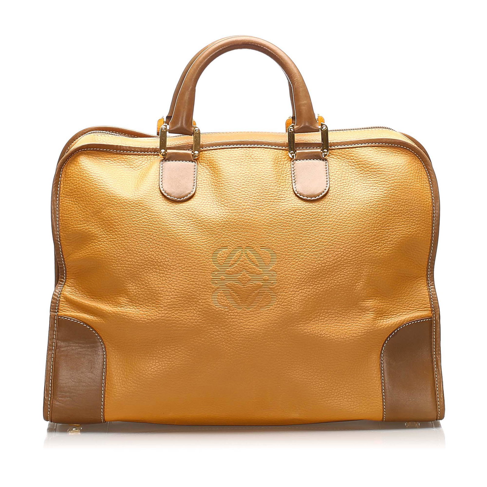 Loewe Amazona 36 Gold Leather Handbag Zip Closure Double Handles