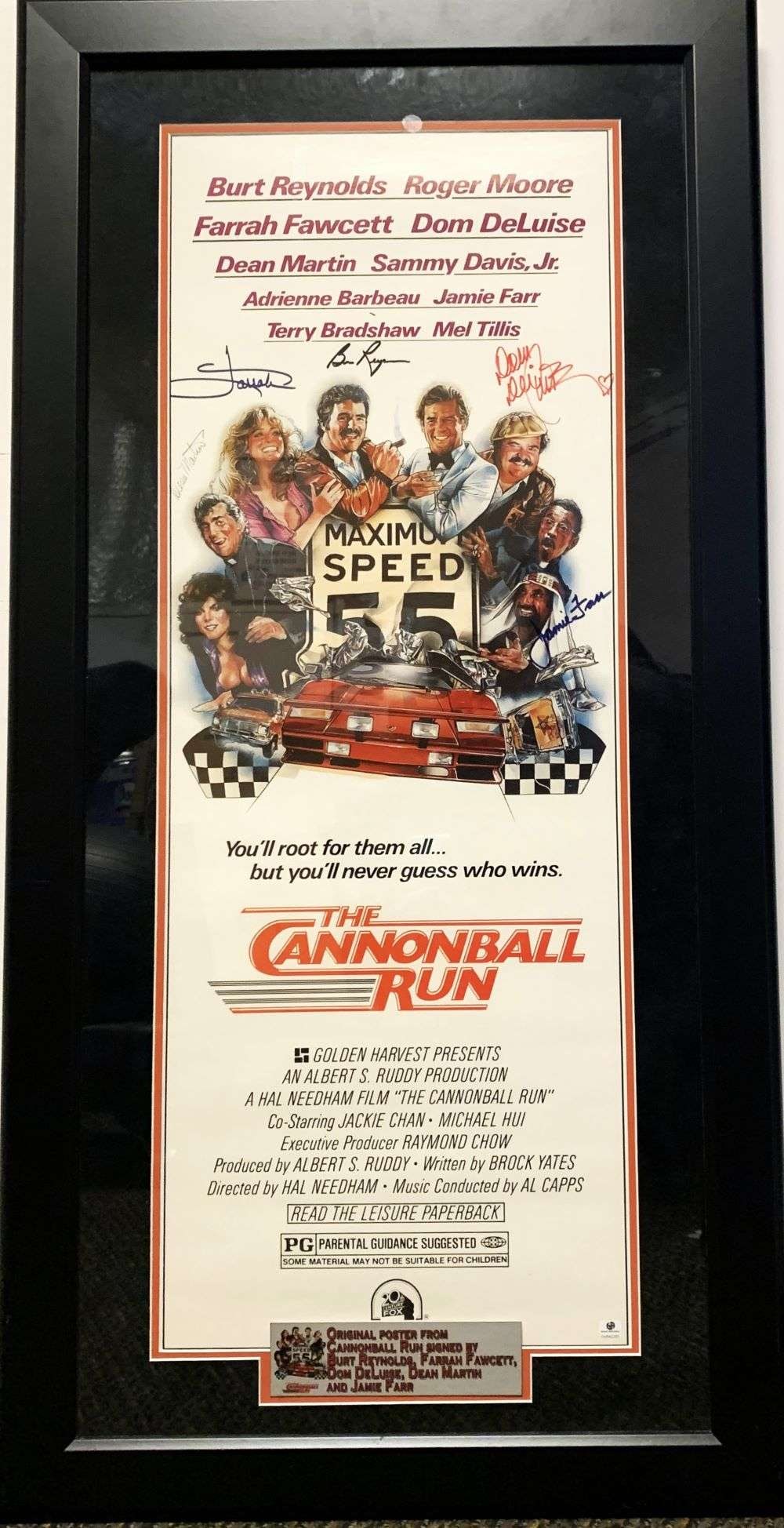 SoldAuthentic Original "The Cannonball Run" Signed PosterSigned by: Farrah Fawcett, Burt Reynolds, Dom DeLuise, Dean Martin, and Jamie Farr. Dimensions: H-44 inches. W-22 inches. DISCLAIMER: This lot is LOCAL PICK-UP ONLY, there is no delivery. This lot isSee Sold Price