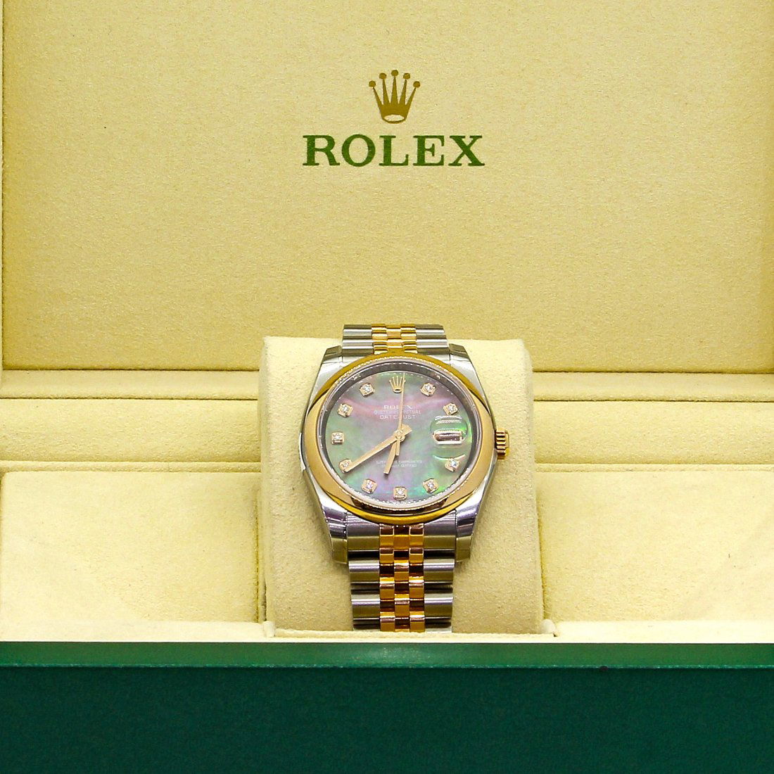 SoldAUTHENTIC ROLEX 18k GOLD DATEJUST WATCH in BOXAUTHENTIC ROLEX YELLOW 18k GOLD and STAINLESS DATEJUST AUTOMATIC WATCH In box with paper. Men's Rolex Datejust 2-Tone Watch - Automatic winding, 27 jewels, Quickset, acrylic crystal. Stainless steel aSee Sold Price