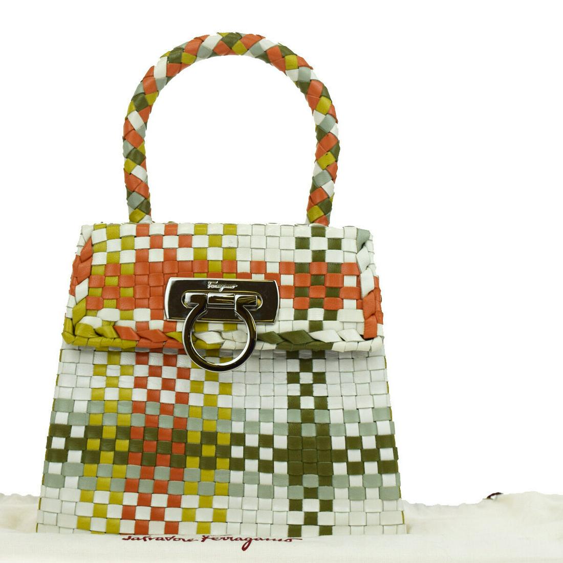 Salvatore Ferragamo Vintage Pursesdesigner Purses Color Block In White Yellow And Orange Leather SatAllamoda Vintage4.3(1)$2005 days Left