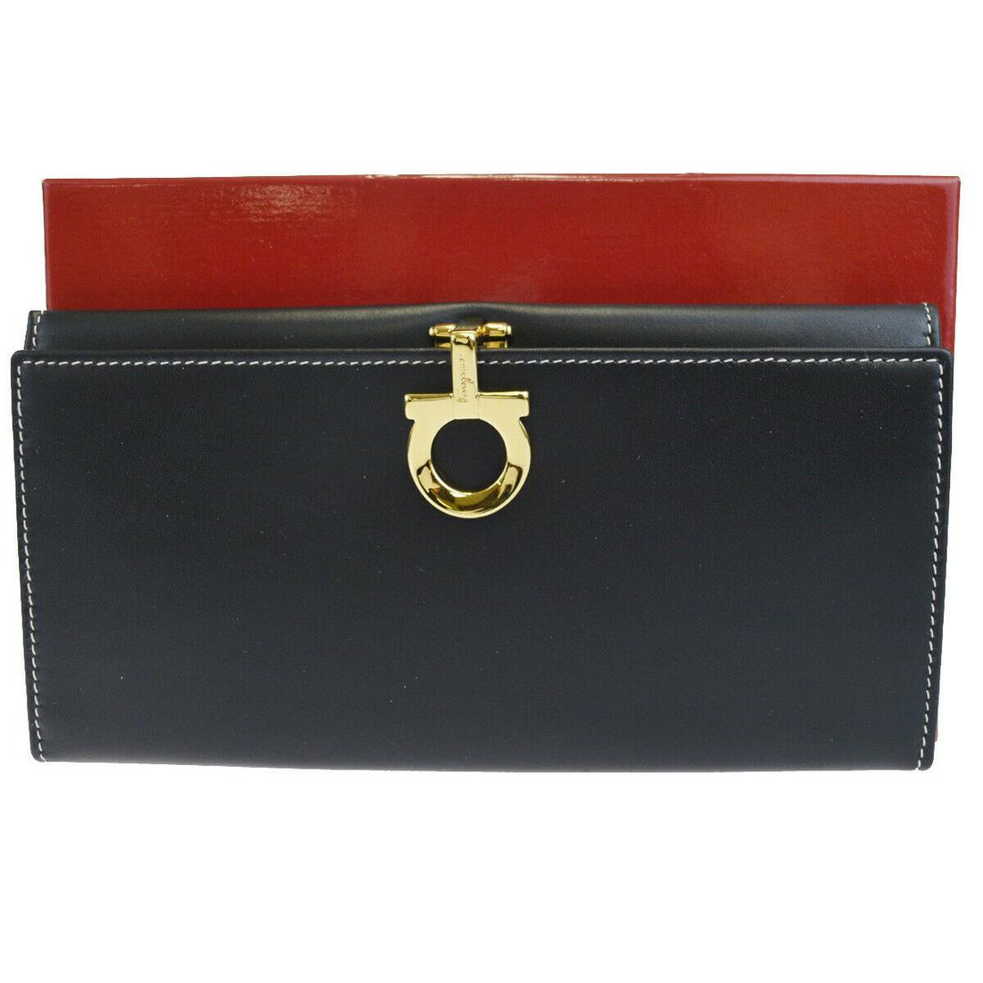 Salvatore Ferragamo Gancini Chain Shoulder Bag Black Gold Leather Made in ItalyBidhaus4.2(838)$2004 days Left