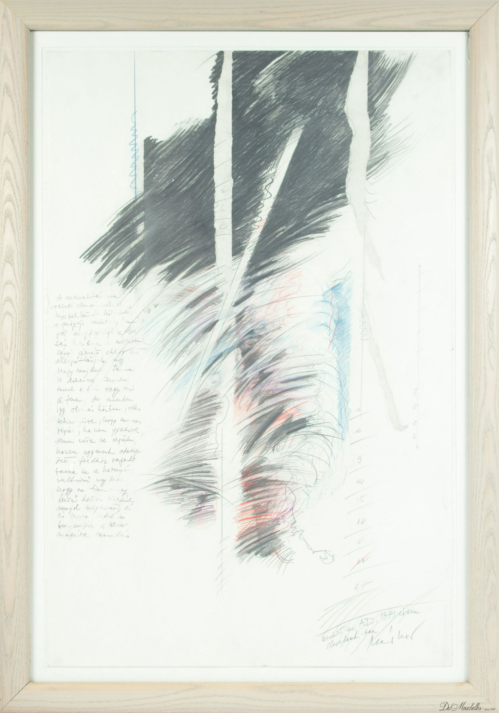 AUTHOR UNKNOWN, PENCIL DRAWING, H 40", W 26", ABSTRACT AND SCRIPT