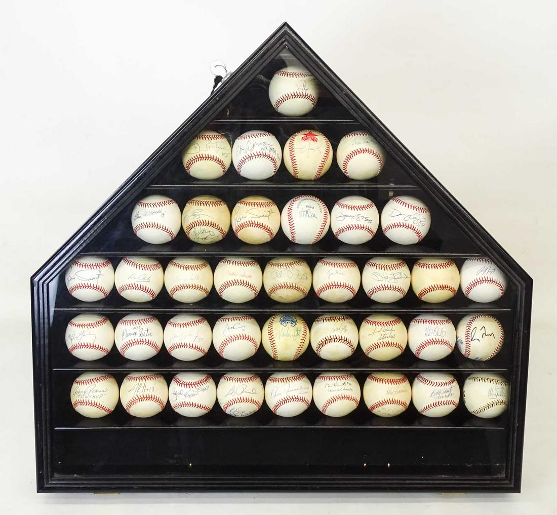 SoldAutographed Baseballs CollectionLot (38) autographed baseballs in custom case (16" x 4" x 28").See Sold Price