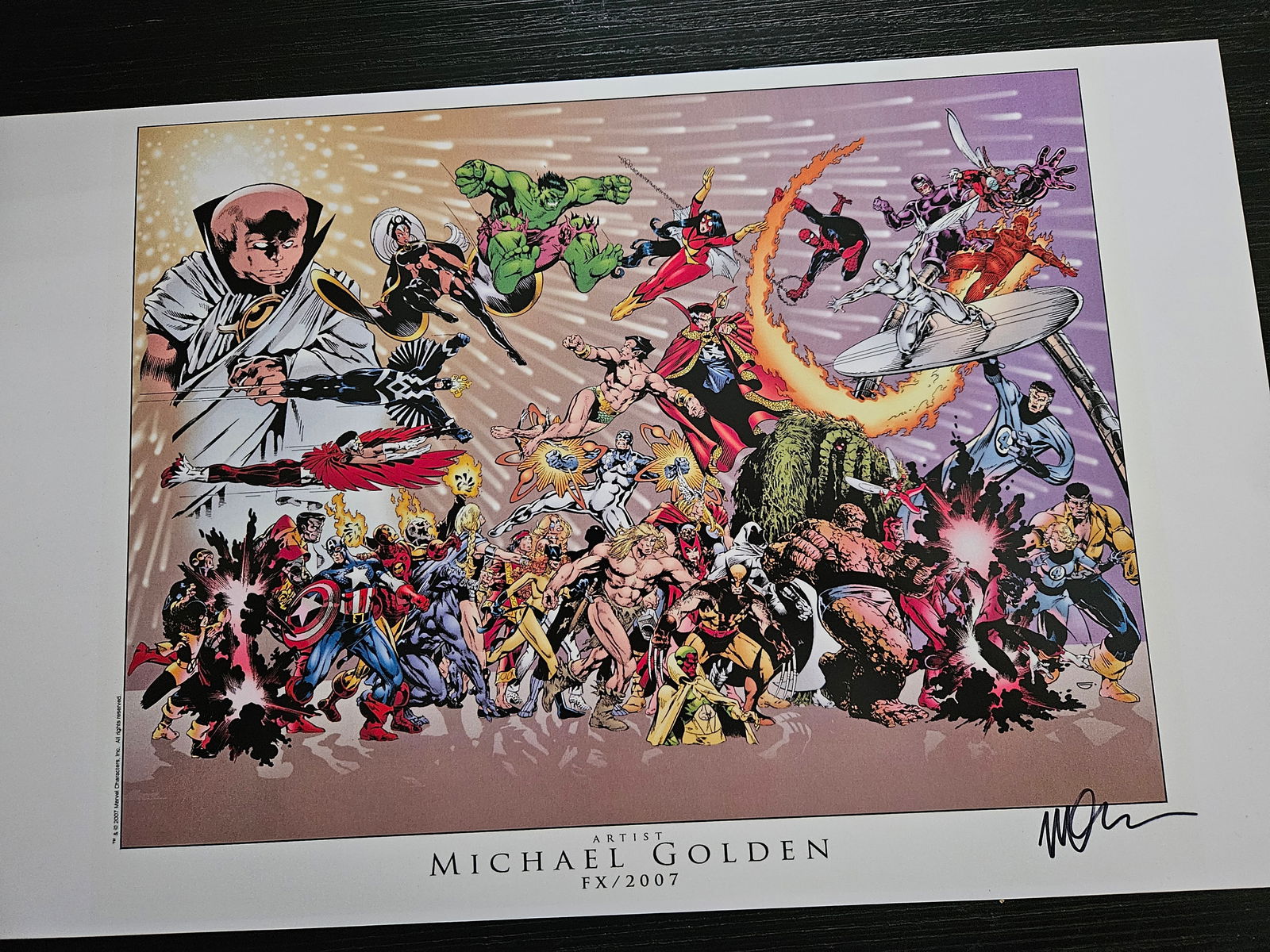 AUTOGRAPHED - MARVEL LINEUP PRINT (MICHAEL GOLDEN)