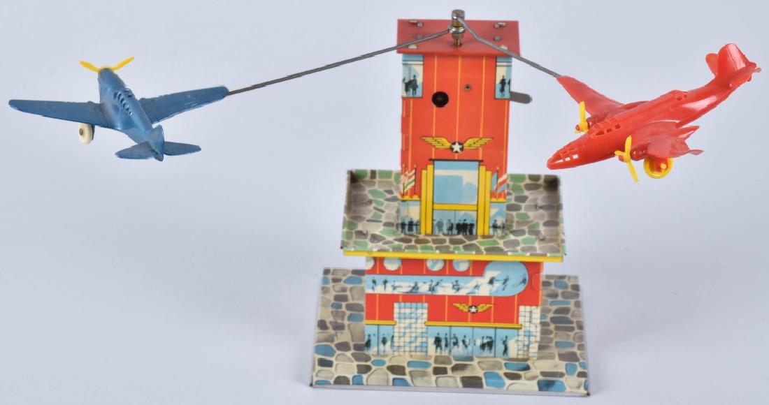 AUTOMATIC TOY CO Tin Windup AIRPLANE TOWER
