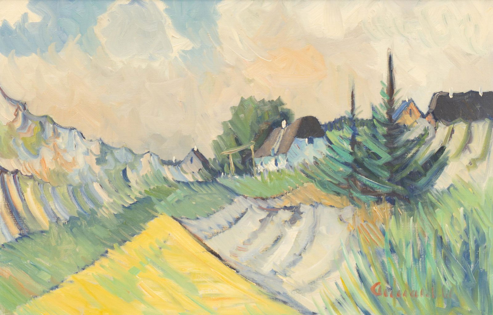 Oil painting Landscape with a house