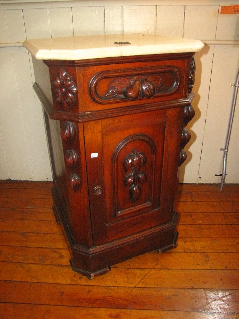 AWESOME ORIGINAL VICT MARBLE TOP HALF COMMODE 2L