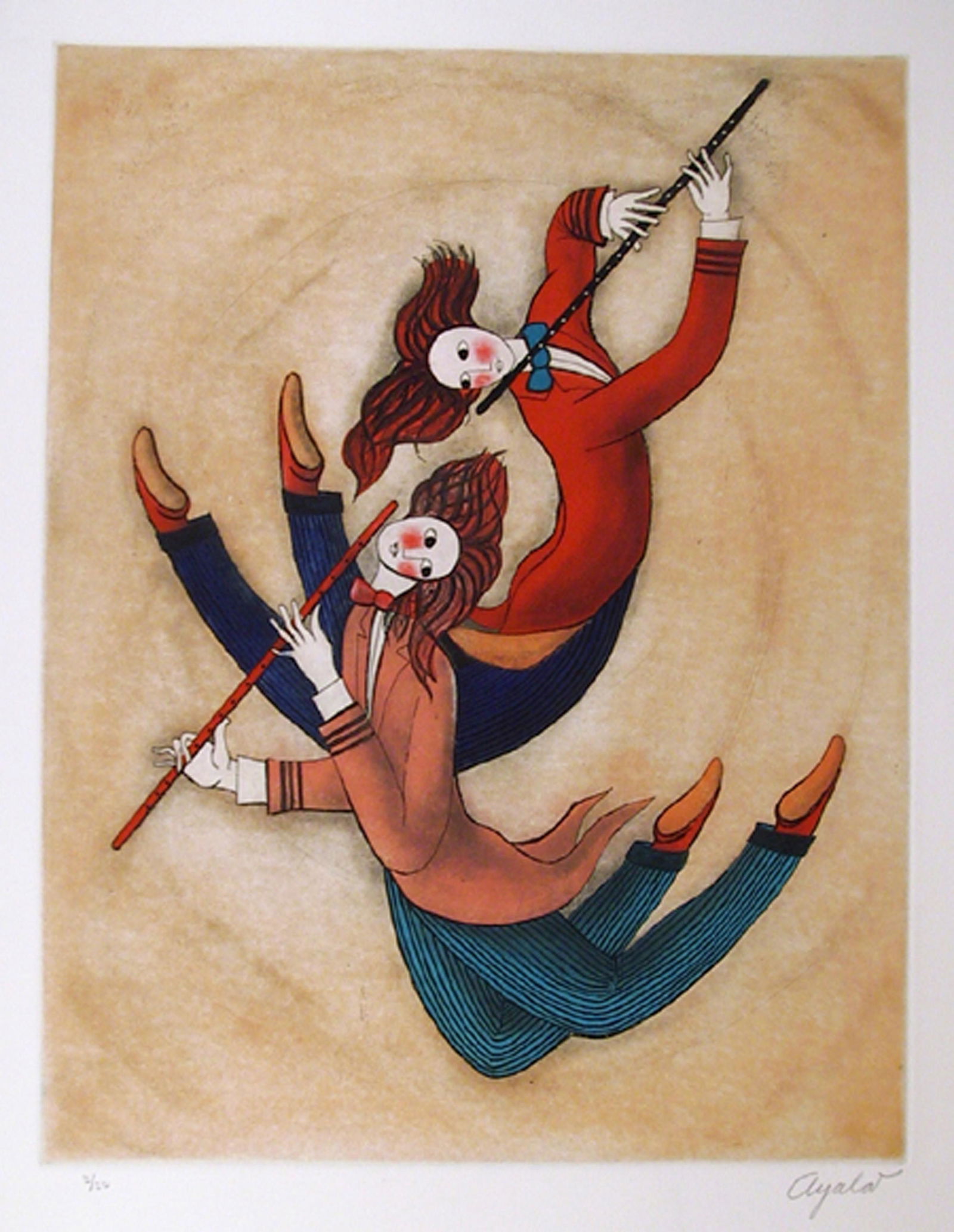 Ayalar, Two Flute Player, Etching and Aquatint
