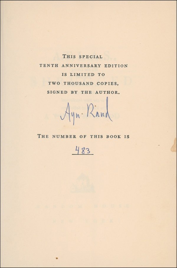 Rand, McNally & Co.'s New Ideal State and Country Survey And Atlas Special Subscription edition.Rand, McNally & Co.'s New Ideal State and Country Survey And Atlas Special subscription edition.Prentice-Hall World AtlasRand, McNally & Co.'s New Ideal State and Country Survey And Atlas Special subscription edition.WILDE (OSCAR) The Ballad of Reading Gaol by C.3.3., fifth edition, AUTHOR'S PRESENTATION COPY TO...18 hrs LeftAyn Rand Signed Gift Card with Two BooksMar 07, 2026Calvin Coolidge Signed Copy of The AutobiographyFeb 26, 2026Ayn Rand, Atlas Shrugged. 1st Printing, 19573 days LeftAlbert Einstein Signed Copy of Albert EinsteinFeb 26, 2026WILDE'S COPY FAWCETT (EDGAR) Fantasy and Passion, OSCAR WILDE'S COPY, INSCRIBED, Boston, Roberts...18 hrs LeftFRANKLIN D. ROOSEVELT SIGNED LOOKING FORWARD BOOKMar 02, 2026WILDE (OSCAR) De Profundis, FIRST EDITION, ONE OF 200 COPIES, INSCRIBED BY ROBERT ROSS TO ADELA ...18 hrs LeftRARE FIRST AMERICAN EDITION HEMINGWAY "IN OUR TIME"5 days LeftRonald Reagan Signed Address to National Urban League: "expand opportunities for young black20 hrs LeftWILDE (OSCAR) The Ballad of Reading Gaol by C.3.3., FIRST EDITION, NUMBER 15 OF 30 COPIES ON JAP...18 hrs LeftAntique Booklet on the Science of Bat Wing Veins C. 1852 Ex University College London CollectionMar 08, 2026