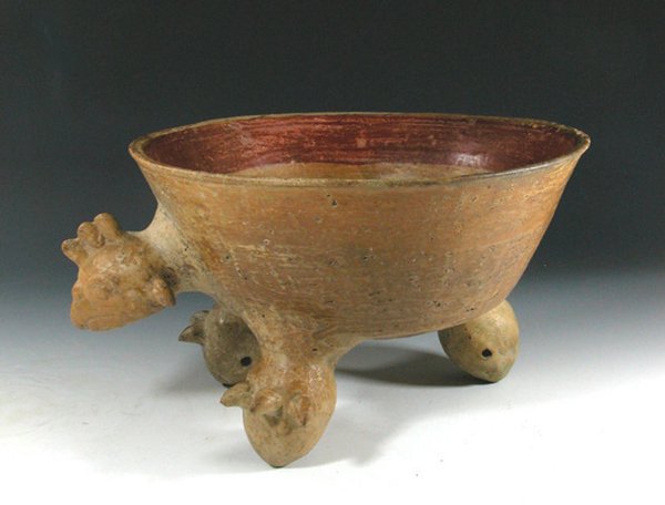 SoldLarge Pre-columbian Terracotta Zoomorphic TripodLarge Pre-columbian Shallow Terracotta Zoomorphic Effigy Tripod Incensario Bowl | This shallow incense bowl has a shaped animal effigy head on three tapered tripod legs and two loops on either side ofSee Sold Price