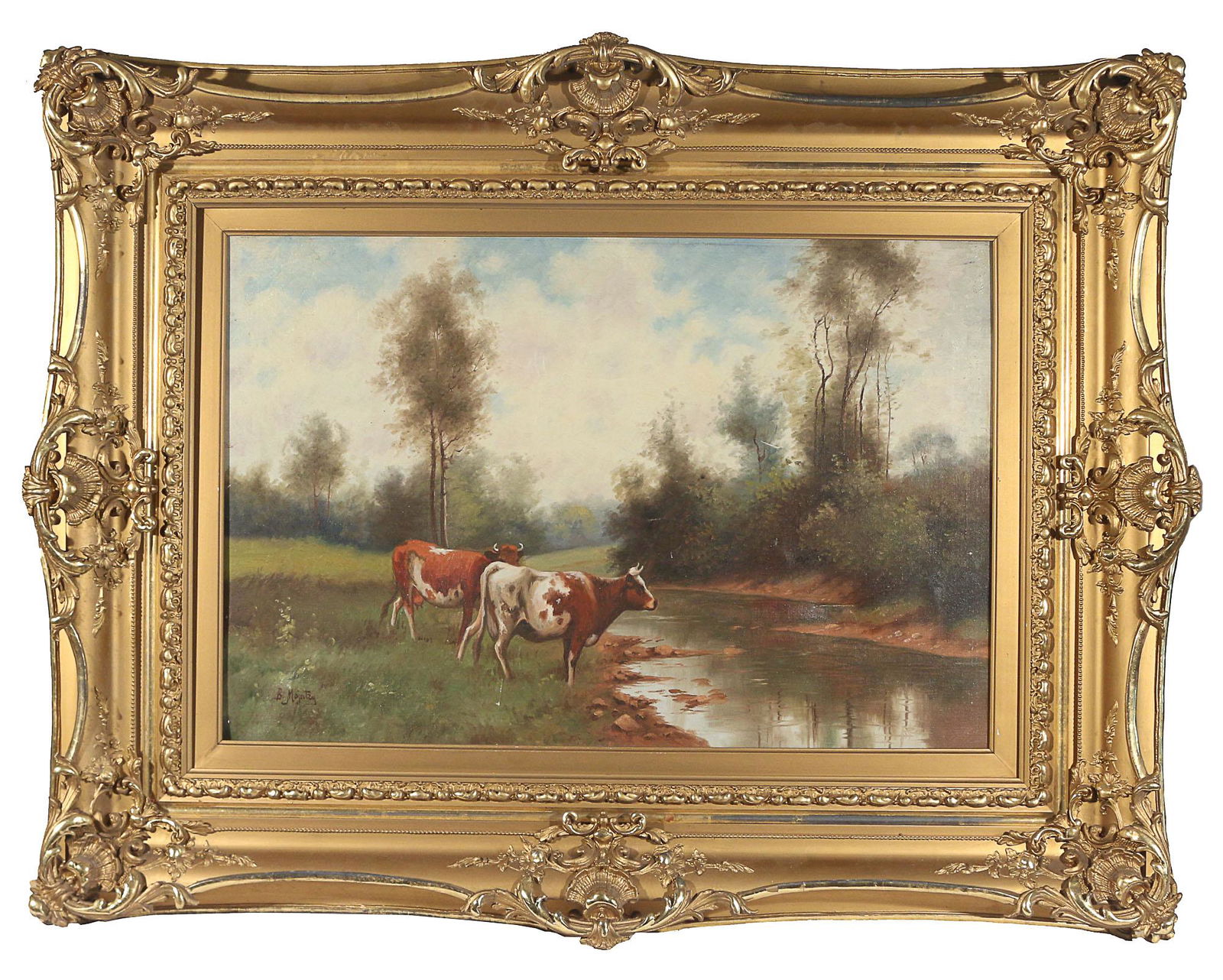 Rudolf Ribarz (Austria,1848-1904) oil painting antique7 days LeftEtty Horton LandscapeMar 12, 202619th C. Oil on Wood PanelMar 07, 2026BENJAMIN CHAMPNEY OIL ON BOARD, COWS IN STREAM.3 days LeftAntique Cattle In A Pastoral Landscape Oil On Canvas Painting6 days LeftOriginal Bullard Oil On Canvas Cow FamilyJul 10, 2025Wilbur Lansil. Barnyard scene with cows and chickens. Oil on canvas. Signed and dated 1891 lower7 days LeftEarly 20th Century Framed Signed CC Walger Painting of Cows in Morning LightAMERICAN SCHOOL (19TH CENTURY) LANDSCAPE WITH CATTLEMar 06, 202619th Century French Oil Painting Pastoral Scene with Cow in Gilt Frame2 days LeftLouis Robbe (Belgian, 1806 - 1887)Mar 08, 2026Oil on Canvas of Cows in the Stream, painted in early 1900's, unsigned, gilded frame has damage,2 days Left"Cow Pasture" by Eugene Verboeckhoven (Belgium, 1798-1881) Oil on CanvasMar 05, 202619TH C. MINIATURE OVAL OIL, LANDSCAPE.3 days LeftHarvey Emrich "Cattle Watering Oil on CanvasMar 19, 2026PAINTING, COWS AT STREAM6 days Left