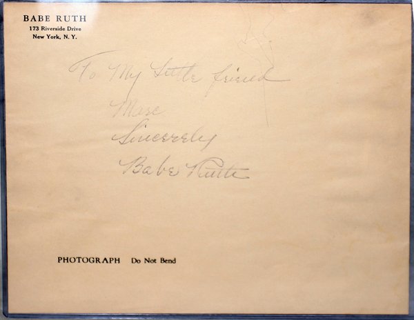 BABE RUTH AUTOGRAPHED BROWN ENVELOPE, H 9"
