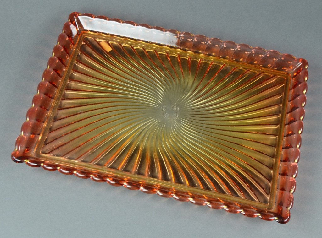 Sold3 pc Lot Baccarat France Rose Tiente GlassThree fine examples of Baccarat Rose Tiente glass make up this lot of trays each unique in design pattern. Each measures 1 1/2" tall, 10" long.See Sold Price
