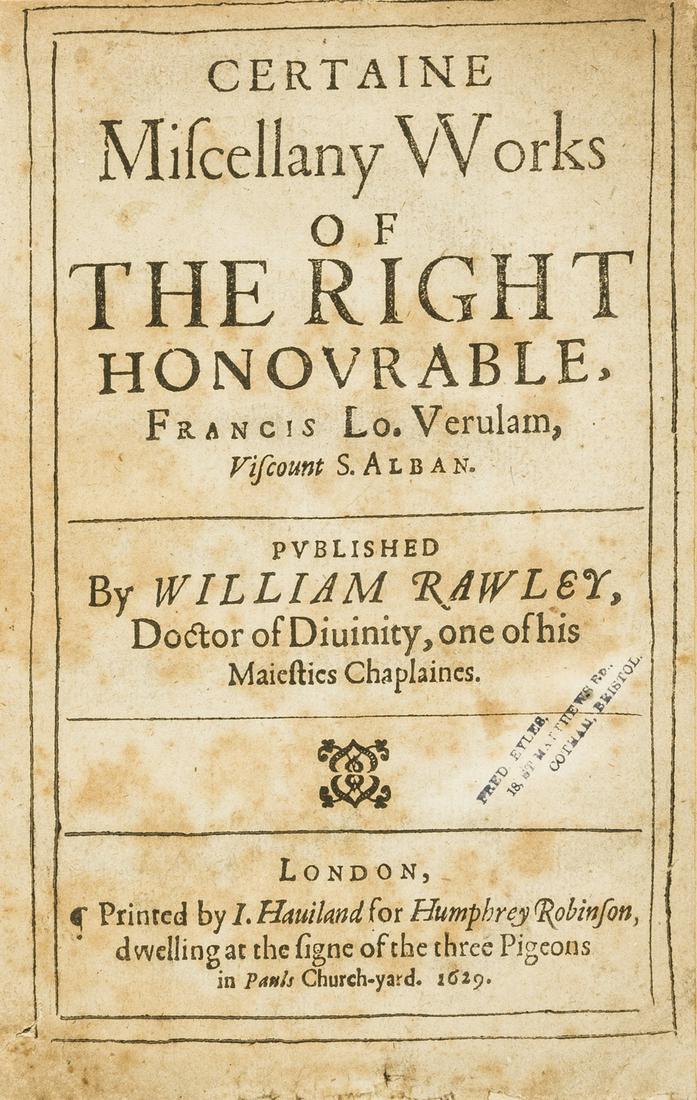 Bacon (Sir Francis) Certaine Miscellany Works, first