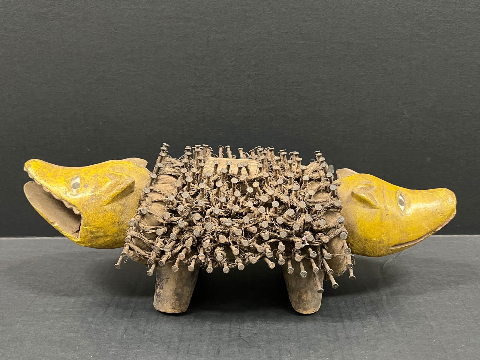 Bacongo Double Head Nail Fetish Statue