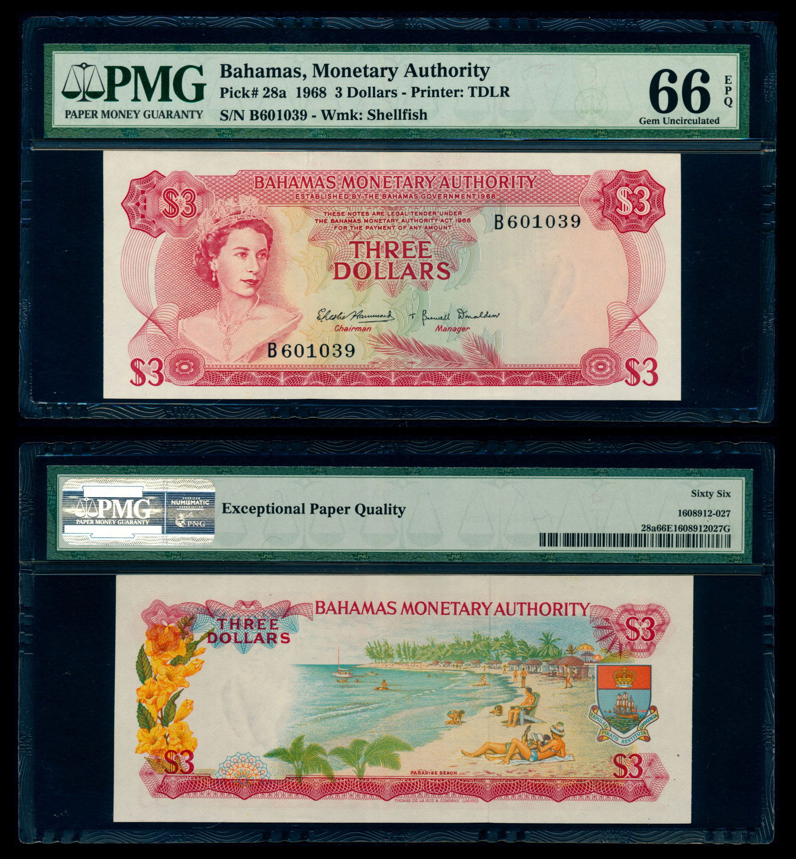 Bahamas $3 1968 QEII PMG