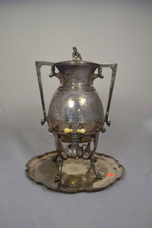 BAILEY & BRAINARD SILVER PLATED COFFEE SERVER WITH TRAY