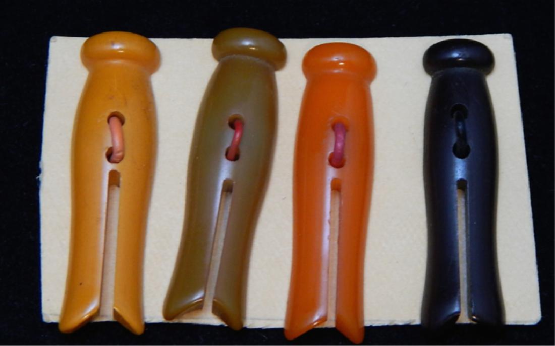 Bakelite Multi Color Clothes Pin Shaped Buttons