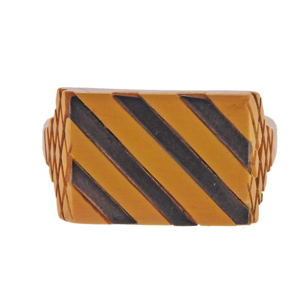 Bakelite Striped 14k Gold Ring
