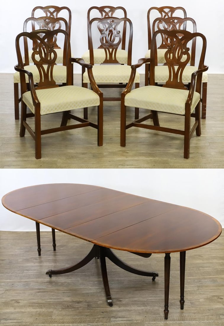 (10) REGENCY STYLE BRASS-INLAID & UPHOLSTERED DINING CHAIRS4 days LeftItalmond Inlaid Dining Table & 12 ChairsFeb 27, 2026Chippendale Style Dining Room Table & ChairsMar 06, 2026English Windsor-style Dining Room SuiteFeb 27, 2026Set of Six Potthast Brothers Chippendale Style Mahogany Dining Chairs3 days LeftDAVID MARGONELLI CHERRY DINING TABLE FROM EDGECOMB, ME4 days LeftAmerican Late Classical Mahogany Drop Leaf Dining Table12 hrs LeftFederal Style Mahogany Dining Table with Double Pedestal and Inlay Details6 days LeftALFONSO MARINA "POTOSINA" TABLE WITH (3) CHAIRSFeb 26, 2026Set of 6 Baker Hepplewhite Mahogany Dining Chairs with Upholstered Seats3 days LeftChippendale Style Mahogany Dining Chairs, 514 hrs LeftElegant Matched Pair of Hickory Chair Chippendale Mahogany Corner ChairsFeb 28, 2026A fine set of 6 Federal mahogany carved and inlaid shield back dining chairs, New York, circa 1800.Mar 01, 2026Pair of Empire Mahogany Side Dining ChairsMar 07, 2026Jefferson Woodworking Table and Broyhill Chairs6 days LeftSet of 6 Hickory Chair Co Mahogany Dining Chairs Queen Anne StyleFeb 26, 2026