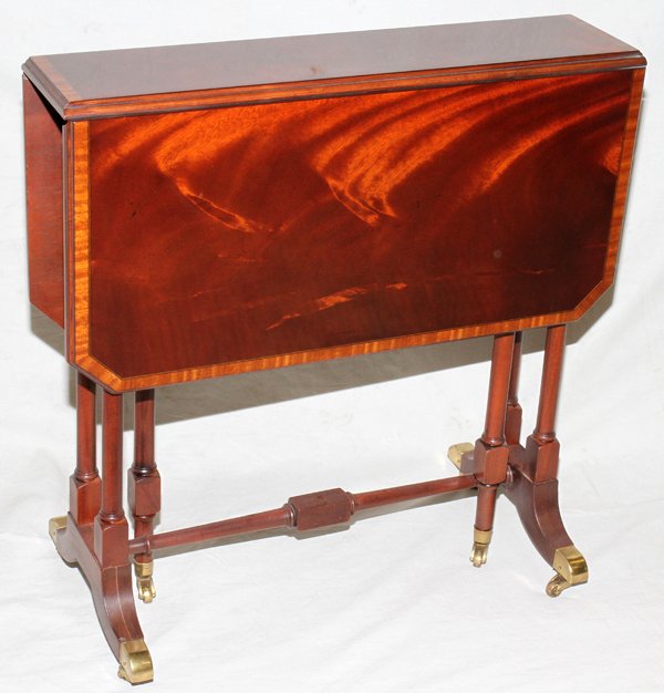 BAKER MAHOGANY DROP LEAF TABLE, H 24", L 24",