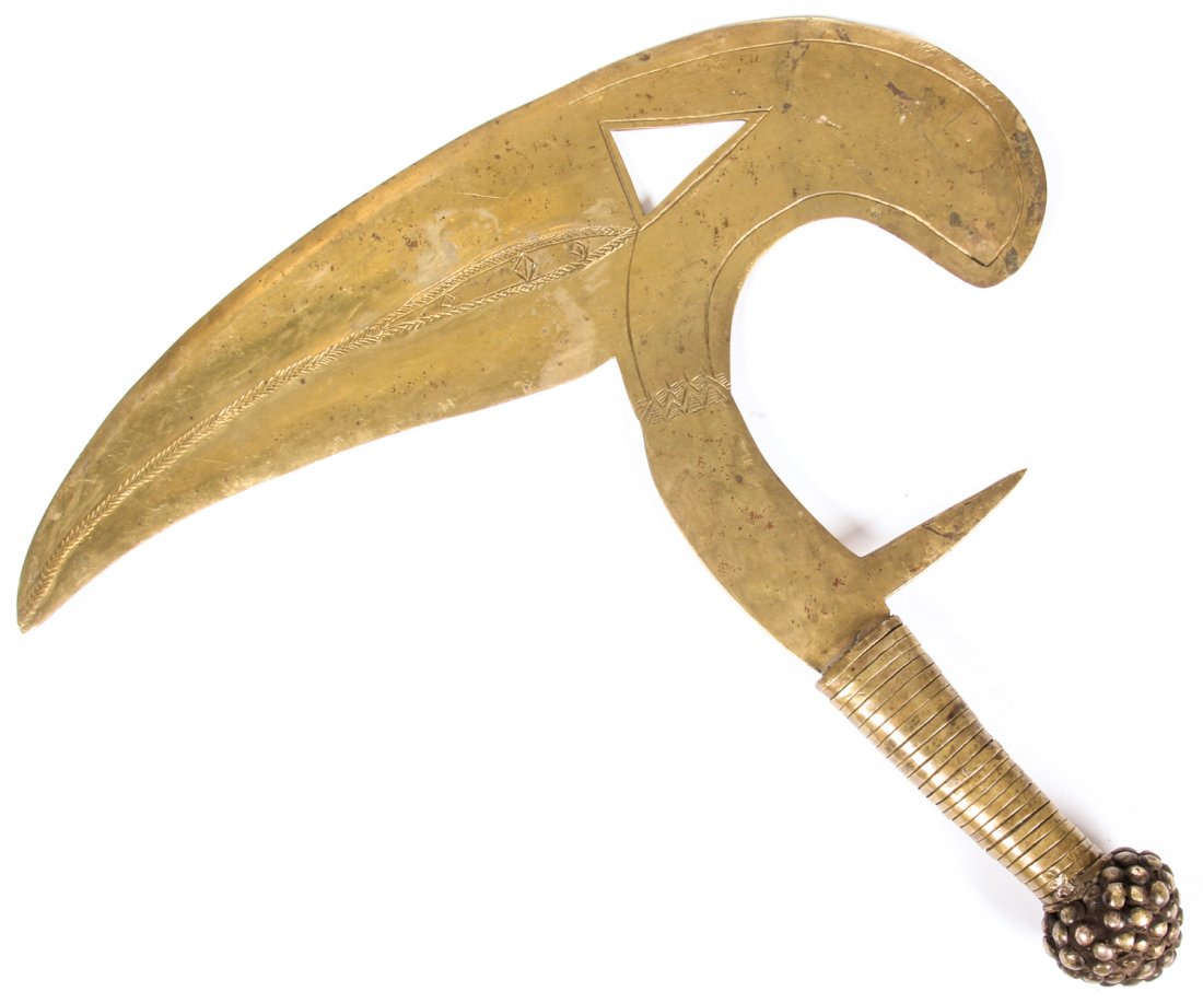 A Western Great Lakes, Eastern Plains gunstock clubApr 02, 2026Buddhist 17th C. Tibetan BRONZE Battle AXE Entwined Mythic Figures & Remnants of GildingMar 28, 2026MANGBETU TRUMBASH SICKLE KNIFEApr 10, 2026PAIR OF MANGBETU TRUMBASH SICKLE KNIVESApr 10, 2026A GOLD-INLAID OTTOMAN TABARZIN SADDLE AXE, 18/19TH CEN.4 days LeftKOTA OR FANG BIRDHEAD THROWING KNIFEApr 10, 2026MANGBETU TRUMBASH SICKLE KNIFEApr 10, 2026A fine copper-gilt diamond axeApr 10, 2026Antique Axe Possibly Papua ProvinceMar 29, 2026AN INDIAN GOLD-INLAY SADDLE AXE (TABARZIN)4 days LeftPhilippines Luzon Kalinga Head AxeMar 28, 2026Asian Ceremonial Axe or Polearm with Engraved Iron BladeMar 27, 2026A Kota Throwing Knife, "musele / onzil"Mar 26, 2026A Ngombe Sickle Blade Knife, "béro"Mar 26, 2026A Nzakara Throwing Knife, "kpinga"Mar 26, 2026Philippine Headhunters Axe, IgorotMar 28, 2026
