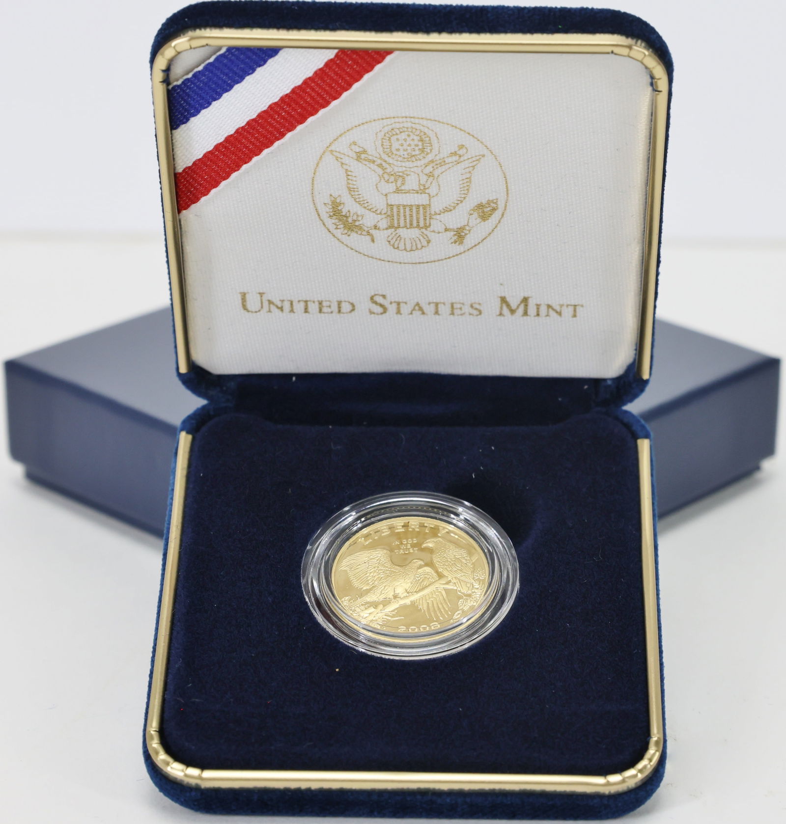Sold$5 US MINT GOLD 2008 BALD EAGLE COMMEMORATIVE COIN$5.00 2008 Bald Eagle United States Mint Gold Coin Proof. In the Original Box with the Original Paperwork, never removed from its plastic case. 90% gold (0.242 ounces of gold). Diameter: 21.6 mm. In BSee Sold Price