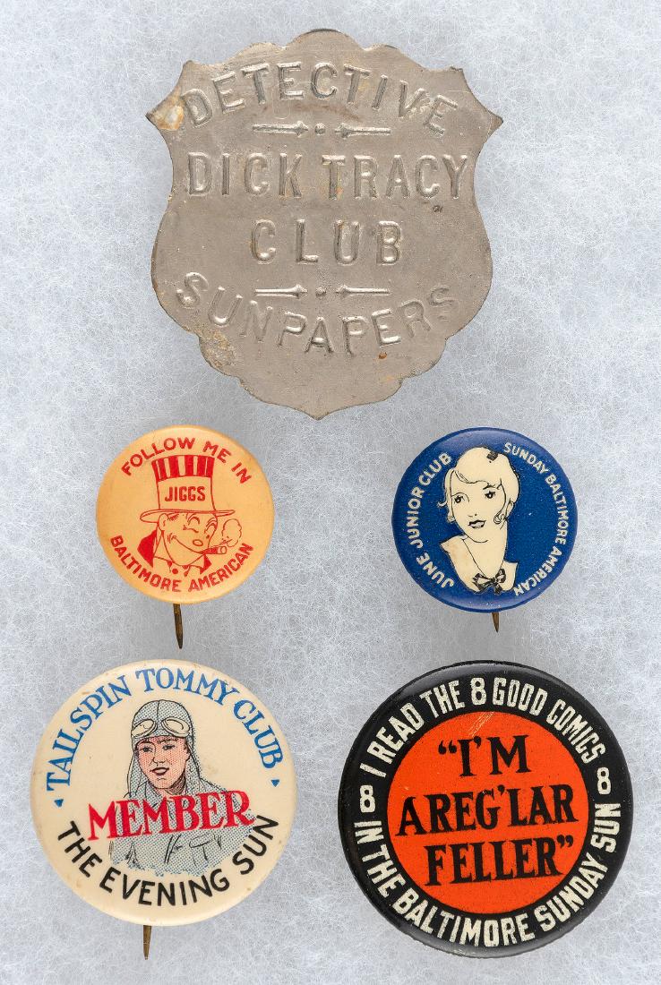 BALTIMORE 1930s NEWSPAPER COMIC STRIP BADGES INCLUDING