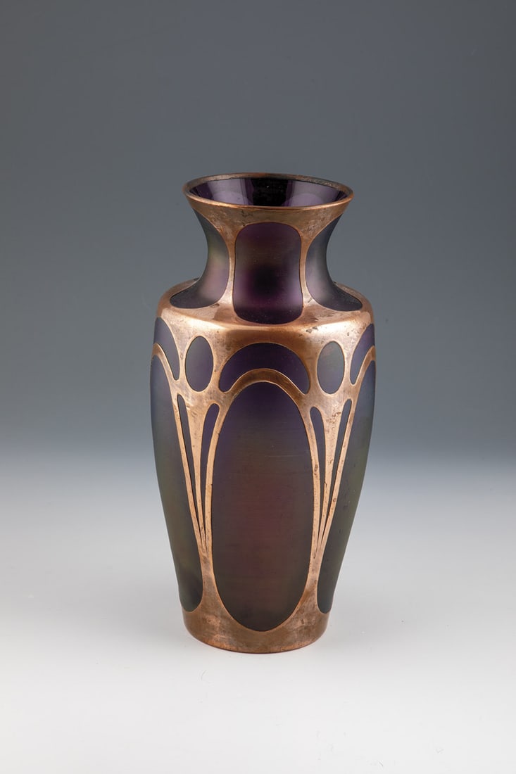 Baluster vase with galvanoplastic copper decor